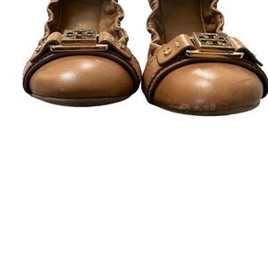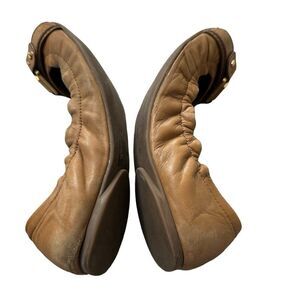 Tory Burch Ambrose flex sole ballet Flats camel tan Leather Scrunch flexible 6.5