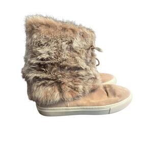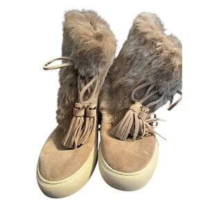 Tory Burch Angelica Fur Boots •Women 8 M• Leather Beige Tassels Pull On