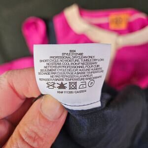 Gently pre-owned dress is in good condition. There are three stains on the dress, see pics. This has a button enclosure in the front with a tie waist.