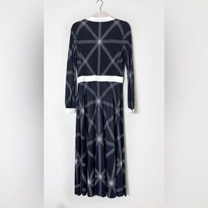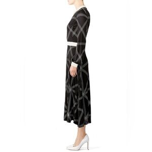 Tory Burch Anja Geometric Black White Midi Dress size M Partial Gold Signature TB Buttons - Hidden side zipper closure.