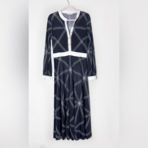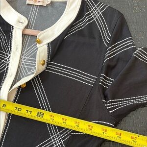 Tory Burch Anja Geometric Black White Midi Dress size M Partial Gold Buttons