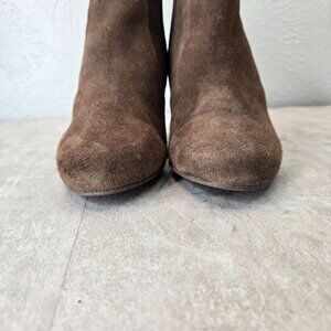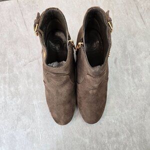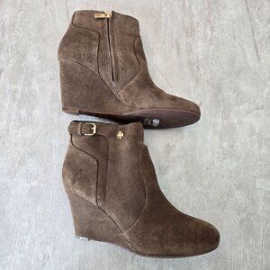 Tory Burch Ankle Wedge Boots Size 8.5 Dark Brown Suede Old Money Dressy Booties (B1-262)