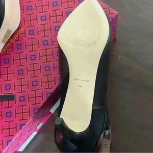 Tory Burch Ankle boot whit logo T hardware logo size 9 color black .worn once