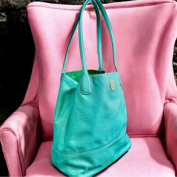 Tory Burch Aqua Turquoise Leather Michelle Tote