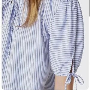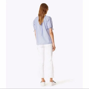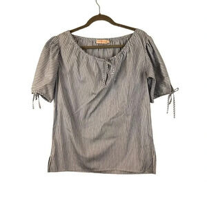 Tory Burch | Ariana Drawstring Top Womens S Small Blue Ombre Stripe Short Sleeve