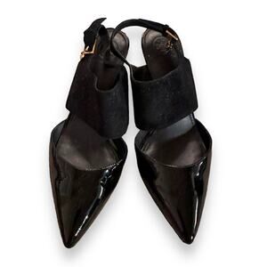 Tory Burch Ashton Black Suede Leather Slingback Kitten Heel Sandal Pumps Sz 9