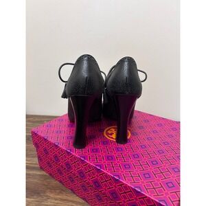 Keywords: Tory Burch, Astrid pumps, Leather heels, Lace up shoes, Brogue pumps, Black heels, Block heel, Designer shoes, Womens shoes, Size 8, Formal shoes, Office wear, Party shoes, Irish charcoal
