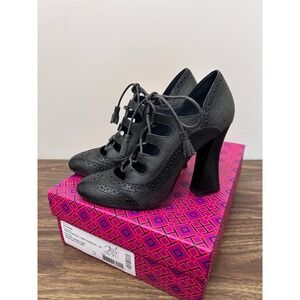 Tory Burch Astrid Leather Lace Up Pumps Heels Brogue Irish Charcoal Size 8
