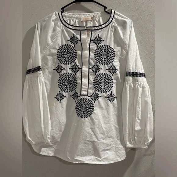 Tory Burch Aubrey Poplin Tunic Embroidered Peasant Top Blouse Ivory Size 4