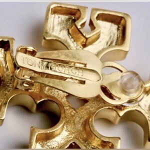 Tory Burch Authentic Bold Double T Golden Roxanne Large Clip On Stud Earrings