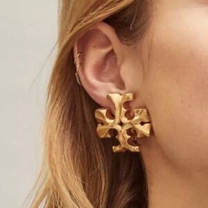 Show your love for all things Tory with these bold and sculptured Roxanne Stud Earring featuring a carved double ‘T’ in vintage gold.
