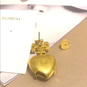 Beautiful Tory Burch classic Roxanne crystal heart drop earrings 18k plated.