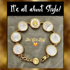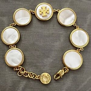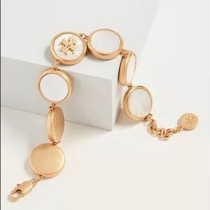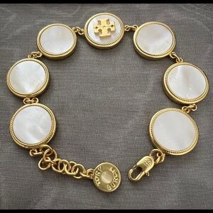 NWOT Tory Burch Authentic White Semi Precious Mother Of Pearl Coin Station Bracelet