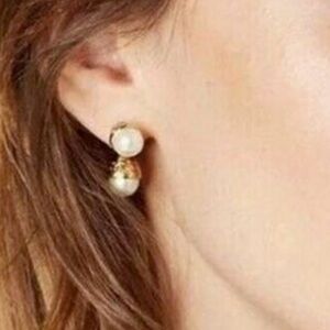 NWOT Tory Burch Double Pearl With Logo Earrings