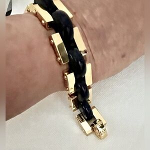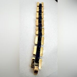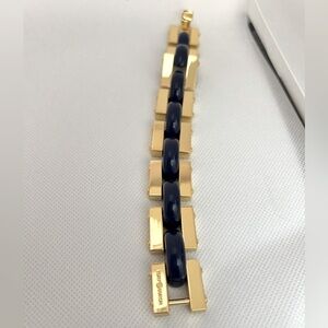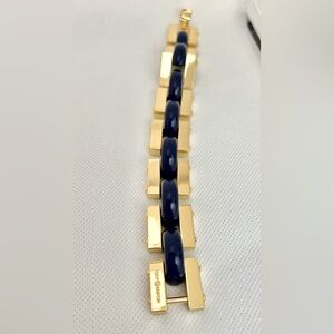 NWOT Tory Burch Chunky Bold Statement Polished Gold Chain Bracelet With Blue Enamel Inlays