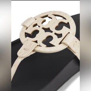 🆕Tory Burch Authentic Leather Miller Cloud Leather Thong Slides Navy/Cream 8 M