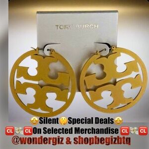 šTory Burch Authentic Yellow Double T Matte Painted Large Hoop Earrings