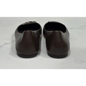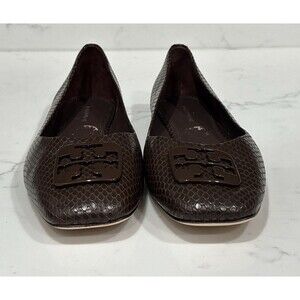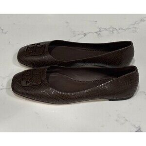 Tory Burch Ballet Flats 10.5 Georgia Square Toe Snakeskin Embossed Leather Brown