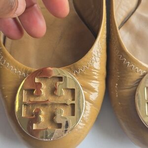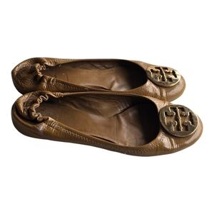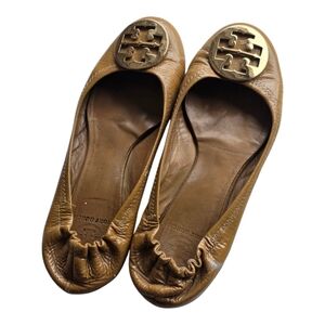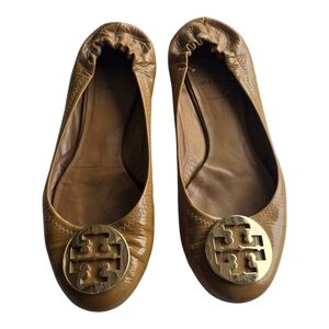 Tory Burch Ballet Flats 8M Women Minie Gold Travel Ballet Logo Comfort Luxury