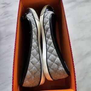 Tory Burch Ballet Flats Loafers Women 8.5 Skylar Quilted Patent Leather Textile