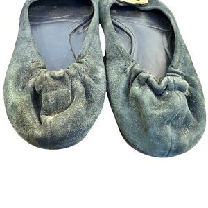 Tory Burch Ballet Flats Reva Women's Navy Suede Gold Logo Medallion Size 7.5