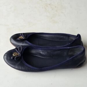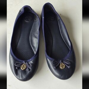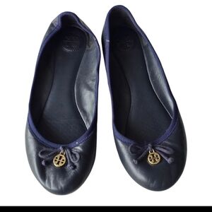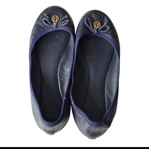 Tory Burch Ballet Flats Size 8M Blue Chelsea Bow Medallion Logo