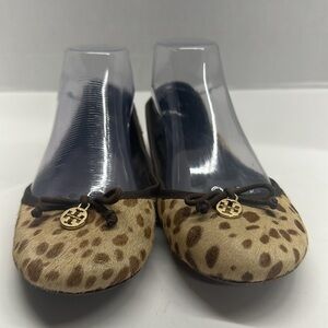 Tory Burch Ballet Flats Slip On Round Toe Cheetah Animal Print Brown Size 8