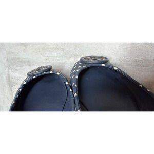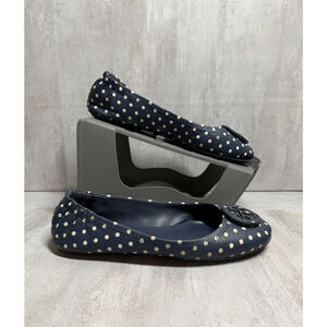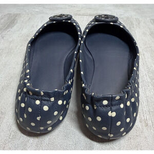 Tory Burch Ballet Flats Womens 7 Navy Polka Dot Leather Logo Round Toe Slip On