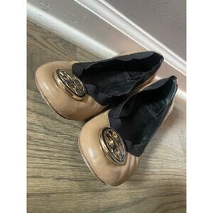 Tory Burch Ballet Slipper Flats Shoes Tan Brown Black Size 8