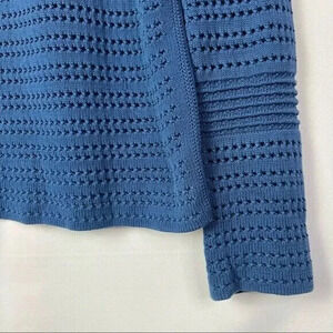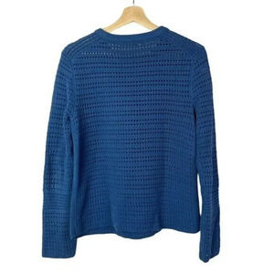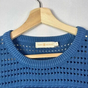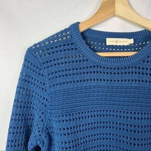 Tory Burch Baltic Sea Blue Open Knit Crewneck Pullover Sweater S