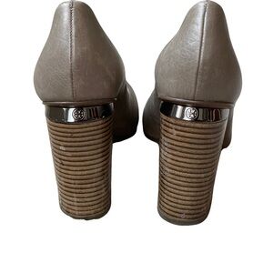 Beautiful Tory Burch Designer Ivory Stacked Pump Heels. Soft leather upper.