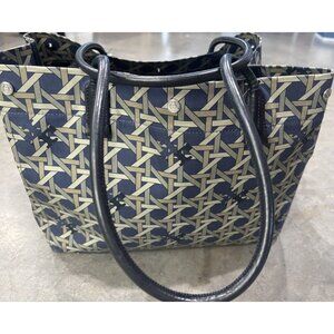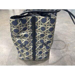 Tory Burch Basketweave Canvas/ Leather Handles Tote Bag Navy