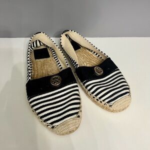 Tory Burch Beacher Black & White Stripped Slip on Espadrilles- 8