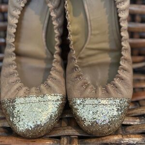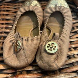 Tory Burch Beige Flats with Sparkling Gold Toe in size 6