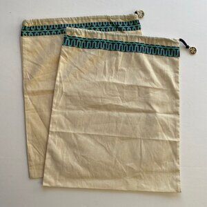 Tory Burch Beige Shoe Dust Bag 12X15 Inches Drawstring Gold Logo Charm 2 Piece