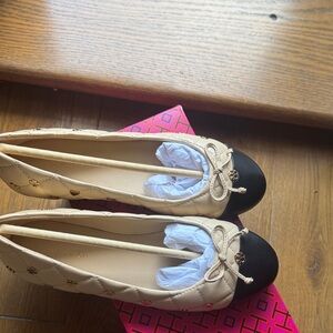 Tory Burch Beige and Black Quilted Flats