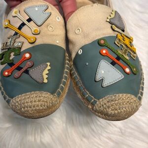 Chic espadrilles by Tory Burch. Beige and teal with vibrant accents. Ideal for casual outings. Fairly used and in great condition! Open to offers. No returns