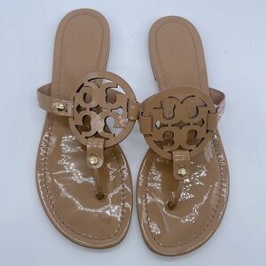 Tory Burch Beige patent leather flat Miller thong sandals 10.5