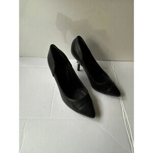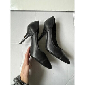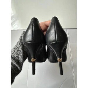 Tory Burch Bernice Leather Pointed Toe Logo Charm High Heels Pumps Shoes