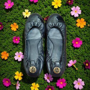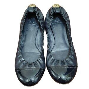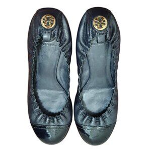 Tory Burch Black Abbey Mestico/Patent Flats dark blue Leather Women's Size 7.5