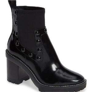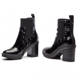 Stylish black ankle boots with studded details. Chunky heel for added height. Perfect for any occasion.