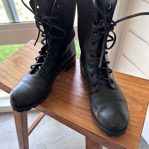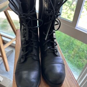 Black leather combat boots in good condition. Lace-up design. Make an offer.