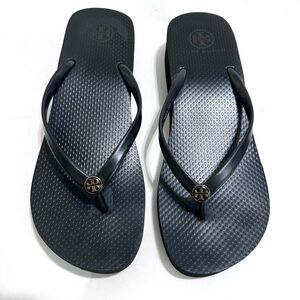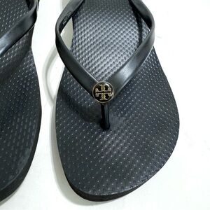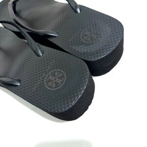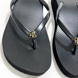 Tory Burch Black Cutout Wedge Flip Flop Platform Sandals Size 9.5