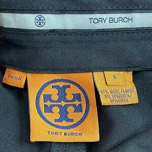 These Tory Burch dress pants offer a sophisticated look with a comfortable fit. Crafted from a wool and spandex blend, they ensure a polished appearance for professional settings.