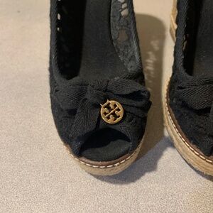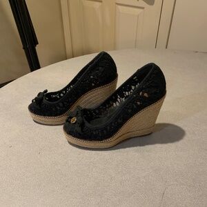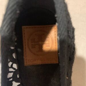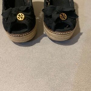 Tory Burch Black Fabric Platform Wedge Espadrilles sz 8.5 B