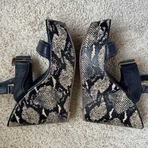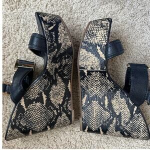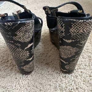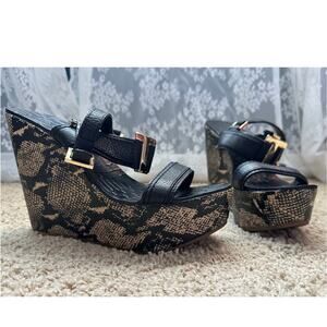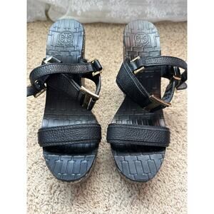 Tory Burch Black Faux Snakeskin Wedge Sandals 8.5