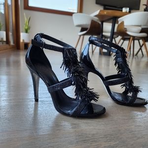 Tory Burch Black Fringe Strappy Heels Size 6.5