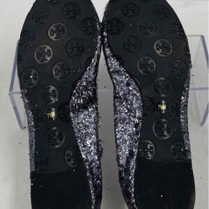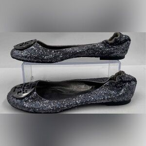 Tory Burch Black Glitter Reva Ballerina Flats Sz 7.5