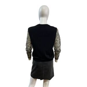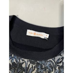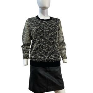 Tory Burch Black Gold Shimmer Sheer Sleeve Pullover Sweater Size M
