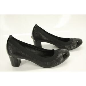 Tory Burch Black Leather Carrie Cap Toe Ballet Heels Pumps Size 7.5 Logo